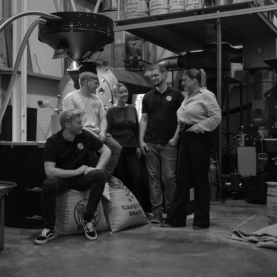 We have been selecting the finest green (raw) coffee beans from around the world, bringing them home and then freshly roasting them to order using our traditional flame-powered roasting equipment.